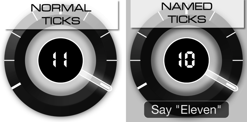 This article applies to all dynamic controls: Knobs, Slider, Crossfaders, and XY-Pads. Named Ticks is a new feature in 1.5.1 (May 2013). Ticks have always been a feature of MIDI Designer.